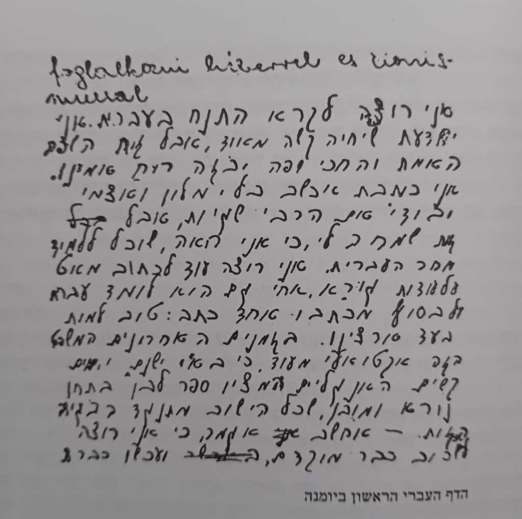 אני כותבת עכשיו בלי מילון ובעצמי ובוודאי עם הרבה שגיאות, אבל זאת שימחה לי, כי אני רואה, שאוכל ללמוד מהר העברית.